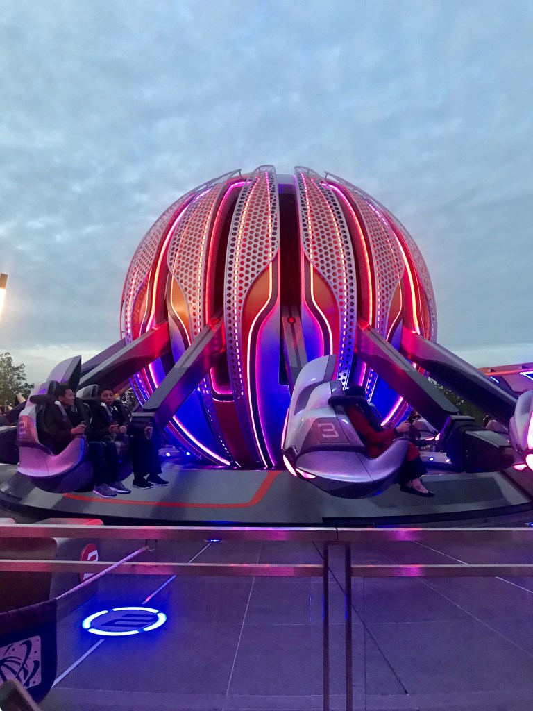 L’attraction que j’ai préférée au parc est celle tirée du film Tron, car c’est une attraction que nous n’avons pas en France et elle est pleine de sensation sans pour autant faire peur. Nous devons nous installer sur des motos dons en position cavalier, et l’attraction va très vite. C’est un manège à sensations fortes que j’ai beaucoup apprécié.
